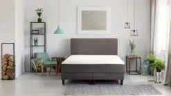 Met deze box Ambra (niet verstelbaar) ben jij voor een heel scherpe prijs in één keer klaar en geniet je van een heerlijke nachtrust én een luxe uitstraling in je slaapkamer. De complete box bestaat uit twee niet verstelbare boxen met een kern van soepel verende latten, een luxe pocketveermatras en een in hoogte verstelbaar hoofdbord. Dankzij de strakke lijnen past box Ambra in iedere slaapkamer. Hij is verkrijgbaar in verschillende, frisse kleuren en afmetingen.