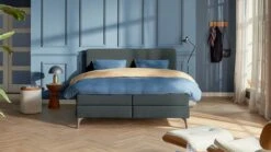 Met de Box Owen Plus vlak zonder matras geniet je van een chique hoteluitstraling in de slaapkamer. De box(en) en het hoofdbord zijn gestoffeerd met zacht polyether. Doordat deze set geen matras(sen) en topmatras bevat kun je eenvoudig je nieuwe box personaliseren door zelf matrassen uit te zoeken die passen bij jouw slaapbehoeften.