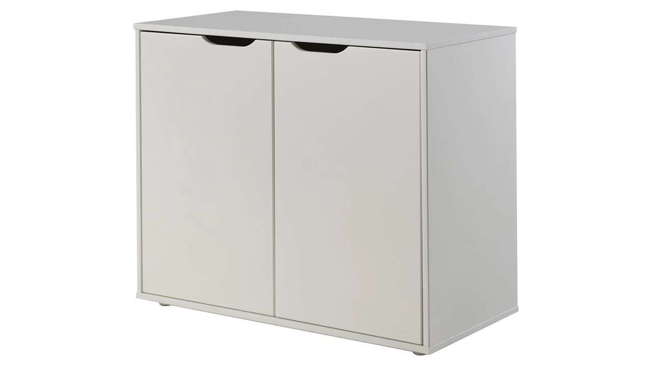 Met de Commode 2 deuren Pino/Scott maak je de kinderkamer helemaal compleet. De commode blinkt uit in zijn eenvoud. Door twee grote openslaande deuren haal je met deze commode een hoop extra opbergruimte in huis. En laat opbergruimte nou iets zijn wat je in de kinderkamer nooit genoeg kunt hebben. Als je nou graag nóg meer opbergruimte wil, kijk dan eens naar de Commode 4 laden Pino/Scott.