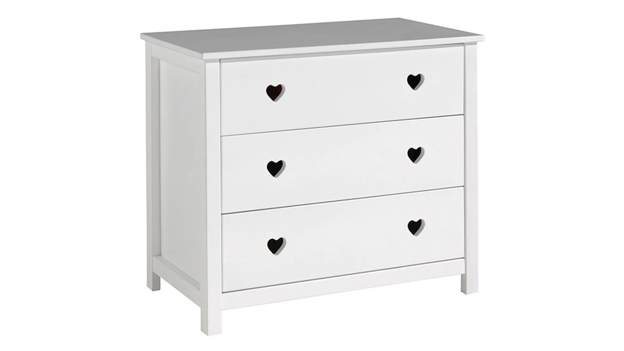 De Commode Amori is de ideale toevoeging voor iedere kinderslaapkamer. Als de kleine nog in de luiers zit kun je de commode gebruiken om te verschonen. Maar door het aandoenlijke design en de multifunctionaliteit van de commode kun je deze ook nog perfect gebruiken als opbergruimte zodra de kleine niet meer zo klein is. Een mooi meubel voor de komende jaren dus.