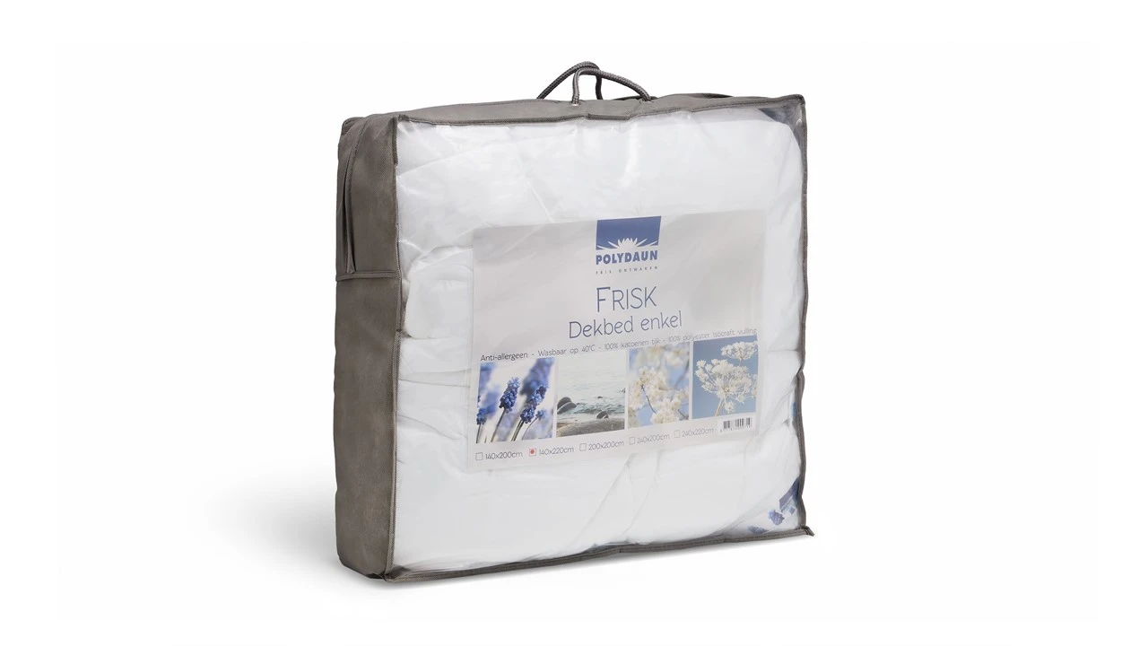 Kruip heerlijk weg onder Dekbed Frisk synthetisch alle seizoenen. Dit dekbed met Isocraft vulling is heel populair door de praktische eigenschappen. Het heeft een zeer goede warmte-isolatie, is veerkrachtig en is blijvend zacht. Daarnaast is het dekbed ook voordelig geprijsd.