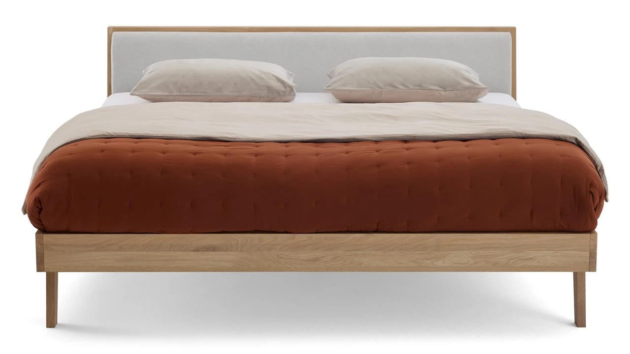 - Massief eikenhouten frame met gestoffeerd hoofdbord